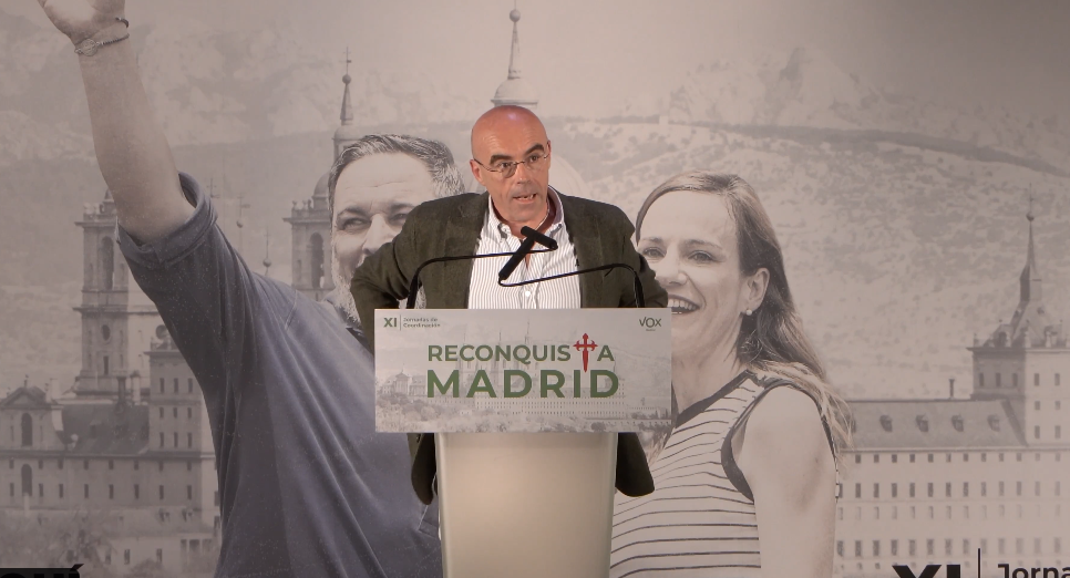 “Vamos a ganar. Seguro. Vamos a acabar con el bipartidismo. Y al final, ese bipartidismo se entregará con armas y bagajes, como hizo Boabdil, porque nosotros estamos reconquistando”, proclamó Buxadé.