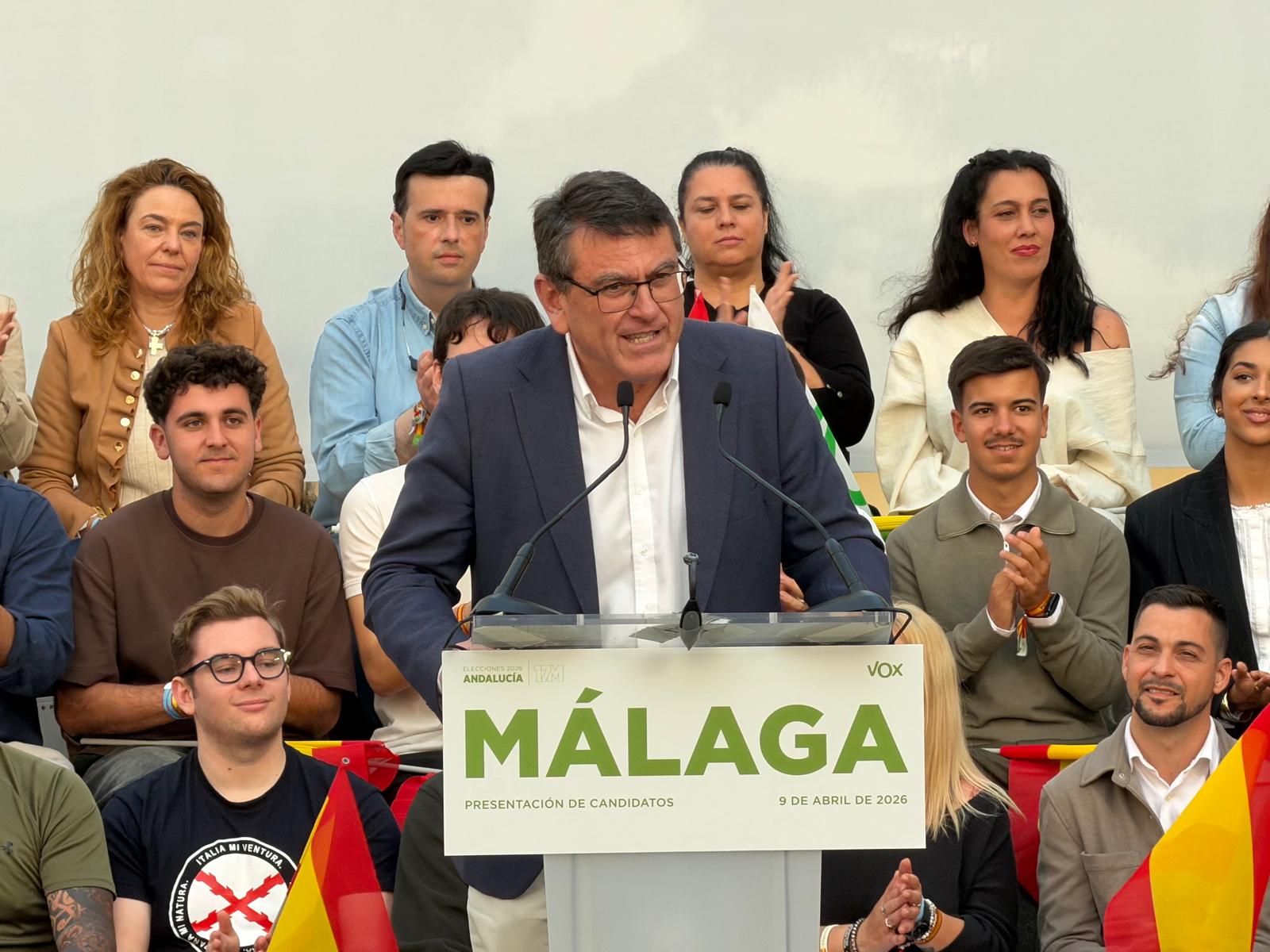 VOX ha presentado en Málaga, con la participación del presidente del partido, Santiago Abascal, y del candidato a la Presidencia de la Junta de Andalucía, Manuel Gavira, a los cabeza de lista con los que concurrirá a las elecciones al Parlamento andaluz.